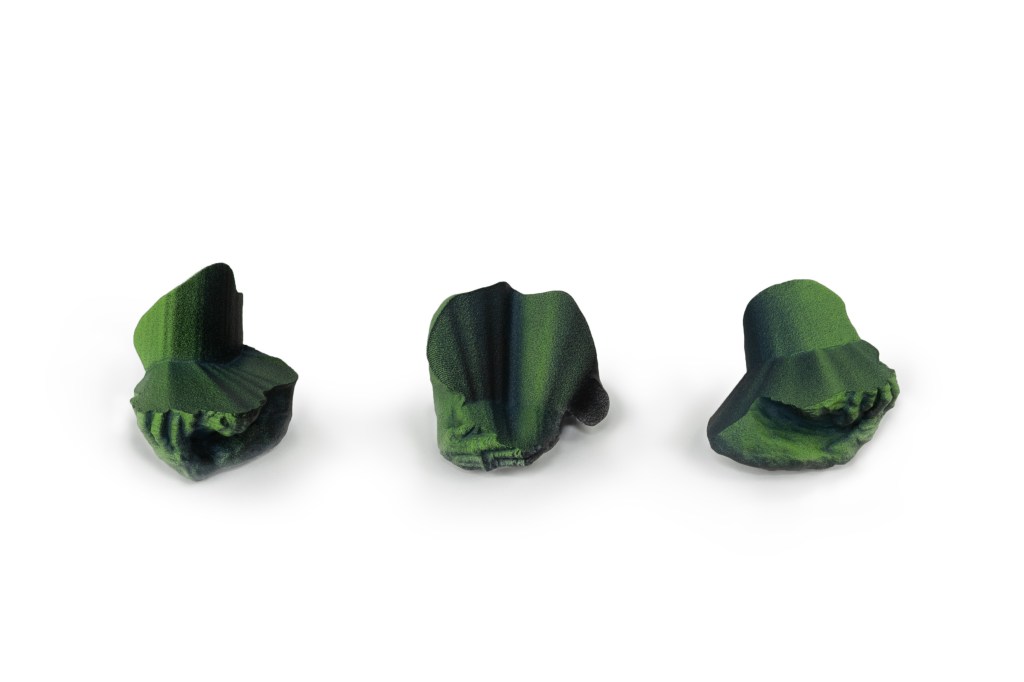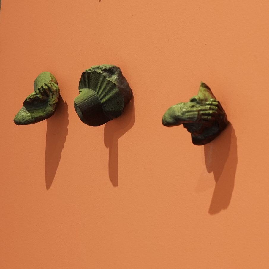 IN SYNC, three brooches, nylon, acrylic color, silver, 2025