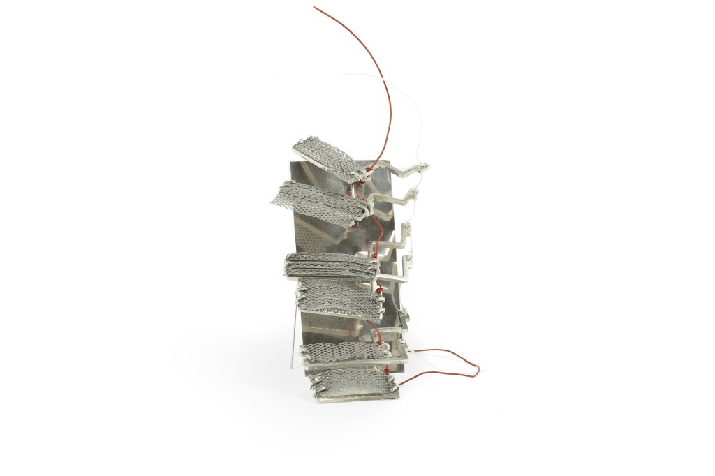 UNTITLED, brooch,silver, steel 3D printing scrap, wire, stainless steel, 2024